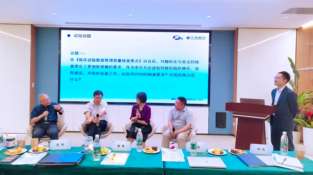 恒瑞医药数据科学中心负责人颜崇超博士、齐鲁制药统计与编程部负责人张韬博士、南京医科大学的赵杨教授、第一三共中国生物统计与数据管理负责人耿原、恒瑞医药统计编程负责人何兵等围绕“ 临床试验随机化与盲法实施核查要点讨论”展开精彩探讨,分享各自经验,直击行业痛点。